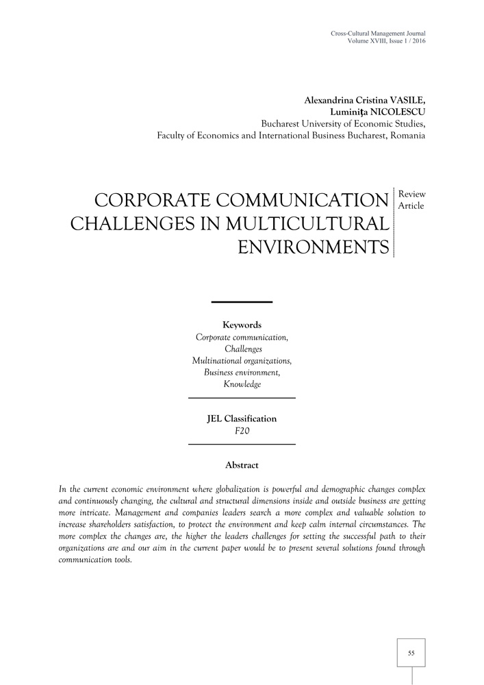 - Keywords: Corporate communication, Challenges, Multinational organizations, Business environment, Knowledge