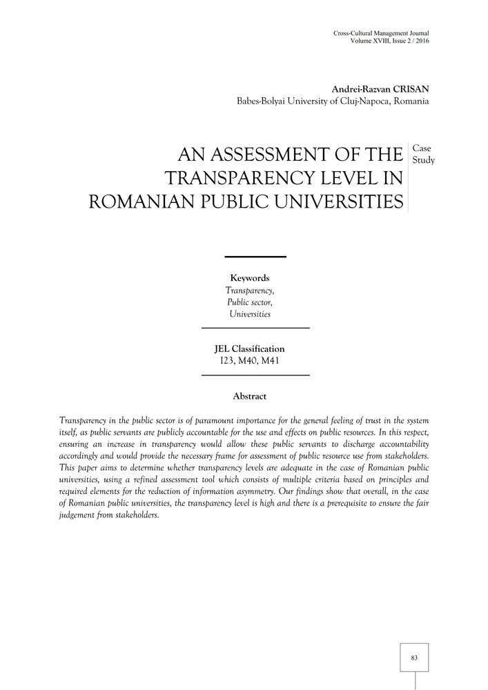 - Keywords: Transparency, Public sector, Universities