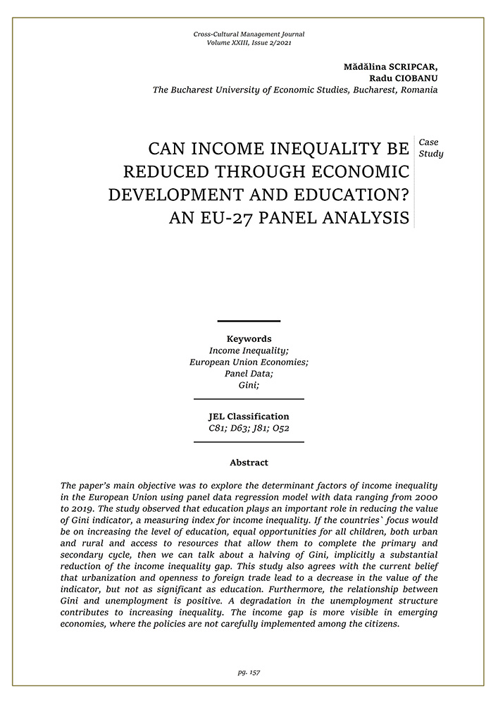 - Keywords: Income Inequality; European Union Economies; Panel Data; Gini;